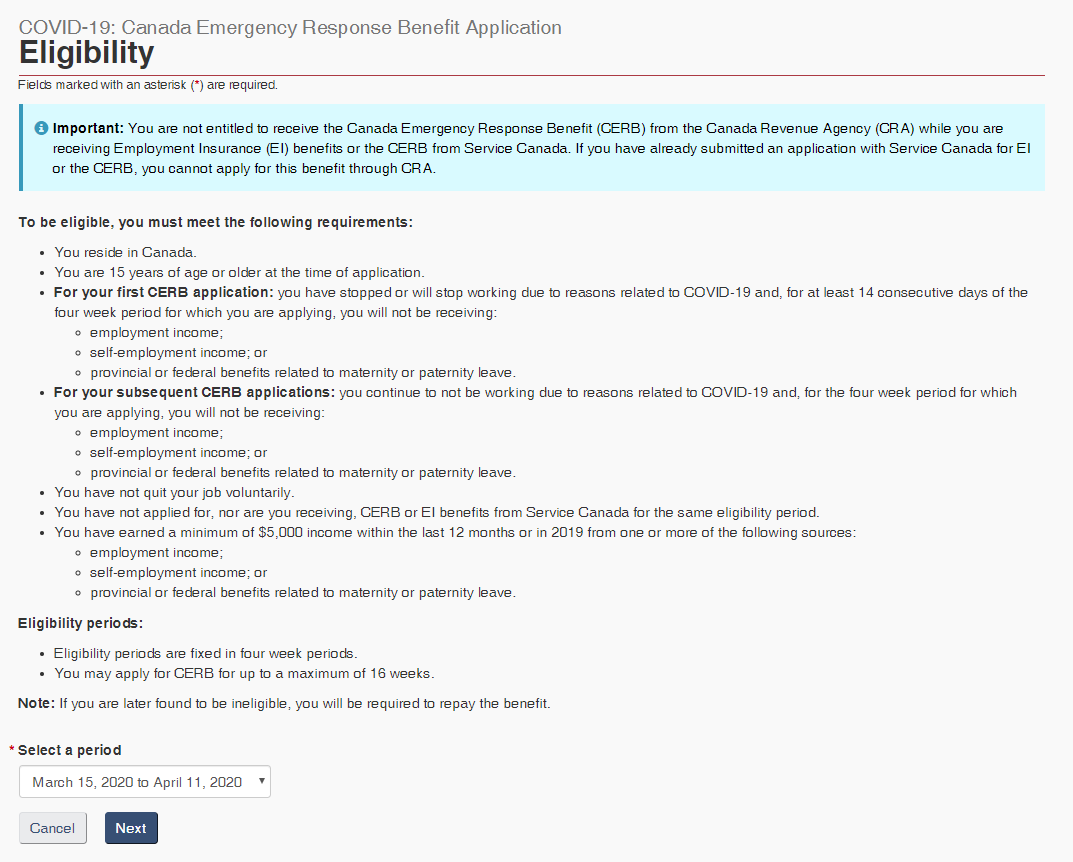 Before you can apply to CERB, you must make sure you have access to either CRA Account or My Service Canada Account.